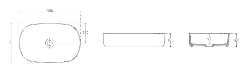 Раковина ISVEA Infinity накладная ШГВ 550*360*120 отверстия для смесителя отсутствуют цвет слоновая кость матовый 10NF65055SV-2K